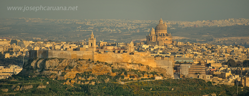 My Easter break in Gozo is quickly coming to an end. But before I leave again for Oxford, here is a picture of the heart of Gozo marked by the historic fortified city of Citadella. Dominating the picture is the huge dome of the parish church of Xewkija. The terrain of the main island of Malta acts as the backdrop