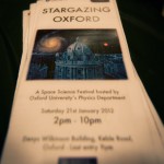 On Saturday, 21st January, Oxford Astrophysics held the event “Stargazing Oxford” as part of the BBC’s Stargazing LIVE string of events across the country. It was an occasion that brought together the whole of Astrophysics at Oxford (and many people from the Physics department at large) to bring astronomy to the general public. The hugely successful event saw about 1,200 people attending, which makes you think that the particle physicists were quite right when they said that astronomers have it easy when it comes to public outreach! But joking aside, I do think that astronomy has a special place amongst the sciences, in that it has huge potential to inspire one and all to lift their gaze, look at the skies, and find the common thread that links us all: We are all children of the stars. It is a perspective that dissolves man-made geographical divisions and makes us look at ourselves from a completely different point of view – a very optimistic one for all of humanity. And whilst it is quite evident that on the grand scale of things we are truly insignificant, we are nonetheless special, for we have looked up and understood. And the game is still not over yet, as we are still grappling with countless questions that still need to be answered. Whilst not everyone who ever looked up at the sky as a child became an astronomer, astronomy is nevertheless a subject that many people remain interested in throughout their lives. Now, needless to say, I am a champion for doing astronomy for its own sake – that is, just for “the pleasure of finding things out”, to borrow Feynman’s own words. But let us not forget that by drawing the attention of many curious little minds, astronomy has time and again been the starting point for budding scientists of all sorts. And scientists are the people who in the long run drive economic development. So that’s a short message for any, shall we say, budding politicians, who might stumble upon this post! Alas, political messages aside, I cannot hide my true colours, and for all I care we should keep doing astronomy for the same reason that men of old told their stories and sang their songs about the stars: because the universe is awe-inspiring and mesmerizingly beautiful, both to our eyes and to our minds. Stargazing Oxford was an occasion that reminded us all why we do what we do, and made us realize how lucky we are to be working in a field as exciting as astronomy. So here are some photos from the event. By no means have I uploaded all of them yet (there are many, many more coming up!). So watch this space over the coming days, as I continue to upload more pictures. Congratulations to all for a fantastic day! To all of you out there: Keep your child-like wonder and keep asking questions!