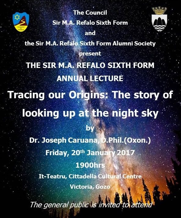 On the 27th of January I was invited to give the annual lecture of the Sir M.A. Refalo Sixth form. The talk carried the title: ‘Tracing our Origins: The Story of looking up at the Night Sky’. It was a very nice occasion on which I had the opportunity to engage with the general public and catch up with members of the school. I thank the council alumni society of the school for the invitation, organisation and wonderful evening.